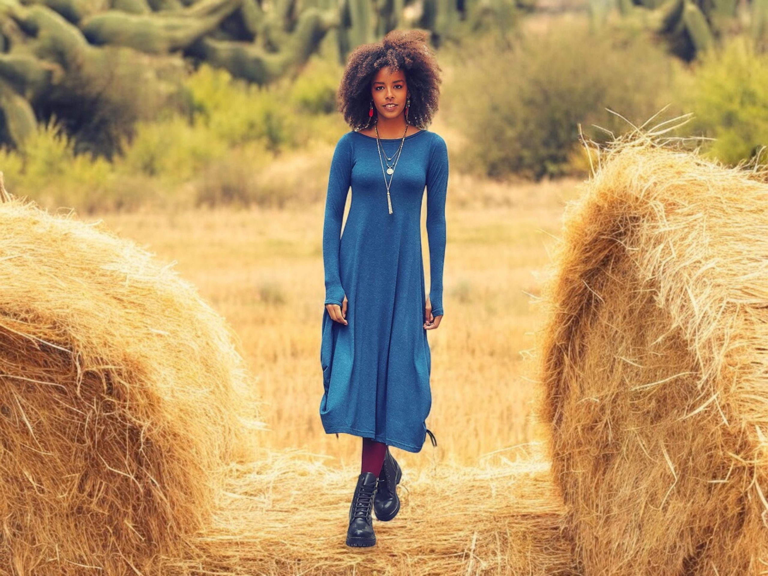 Bohemian Long Sleeve Dress: Vintage Style With Side