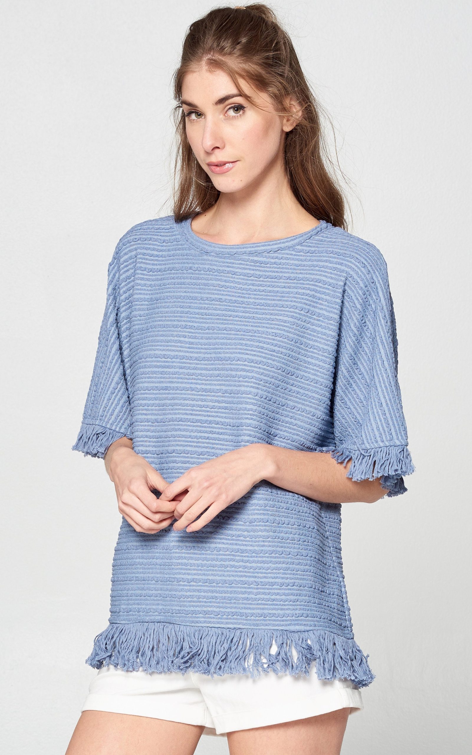 Be the first to review “Boho Fringe Knit Top Short Sleeve Round Neck”