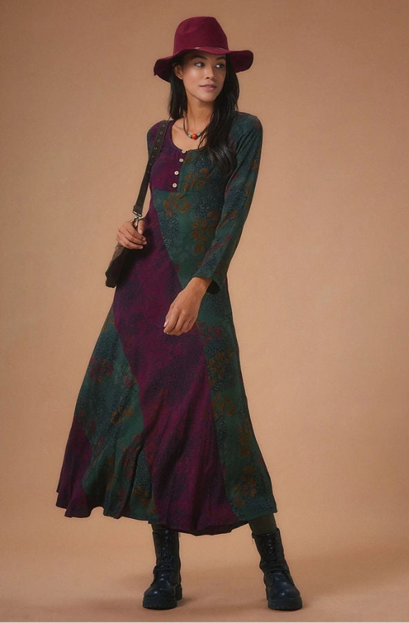 This beautifully designed maxi dress is made from 100% breathable viscose fabric, ensuring comfort and elegance all day long. The soft, natural texture does not trap heat, making it ideal for cooler seasons.