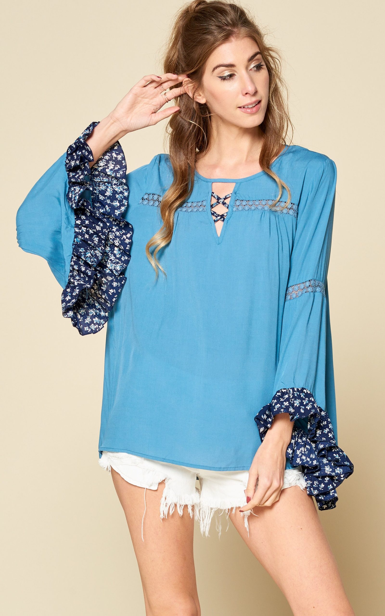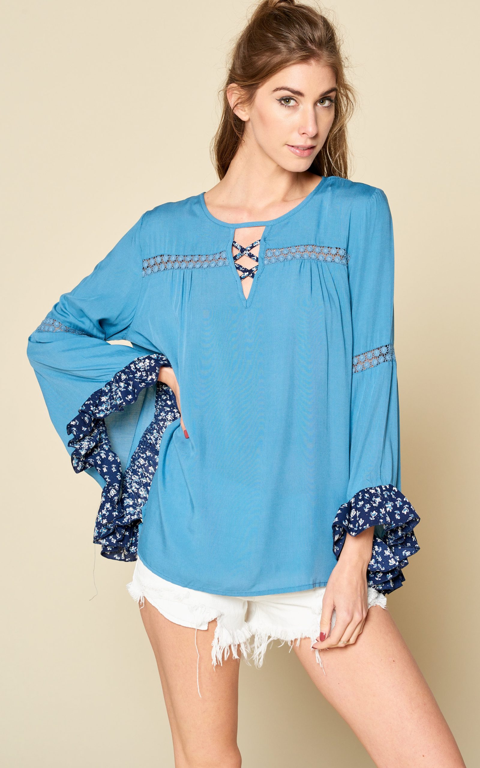 Floral Bell Sleeve Blouse: Rayon Boho Top With