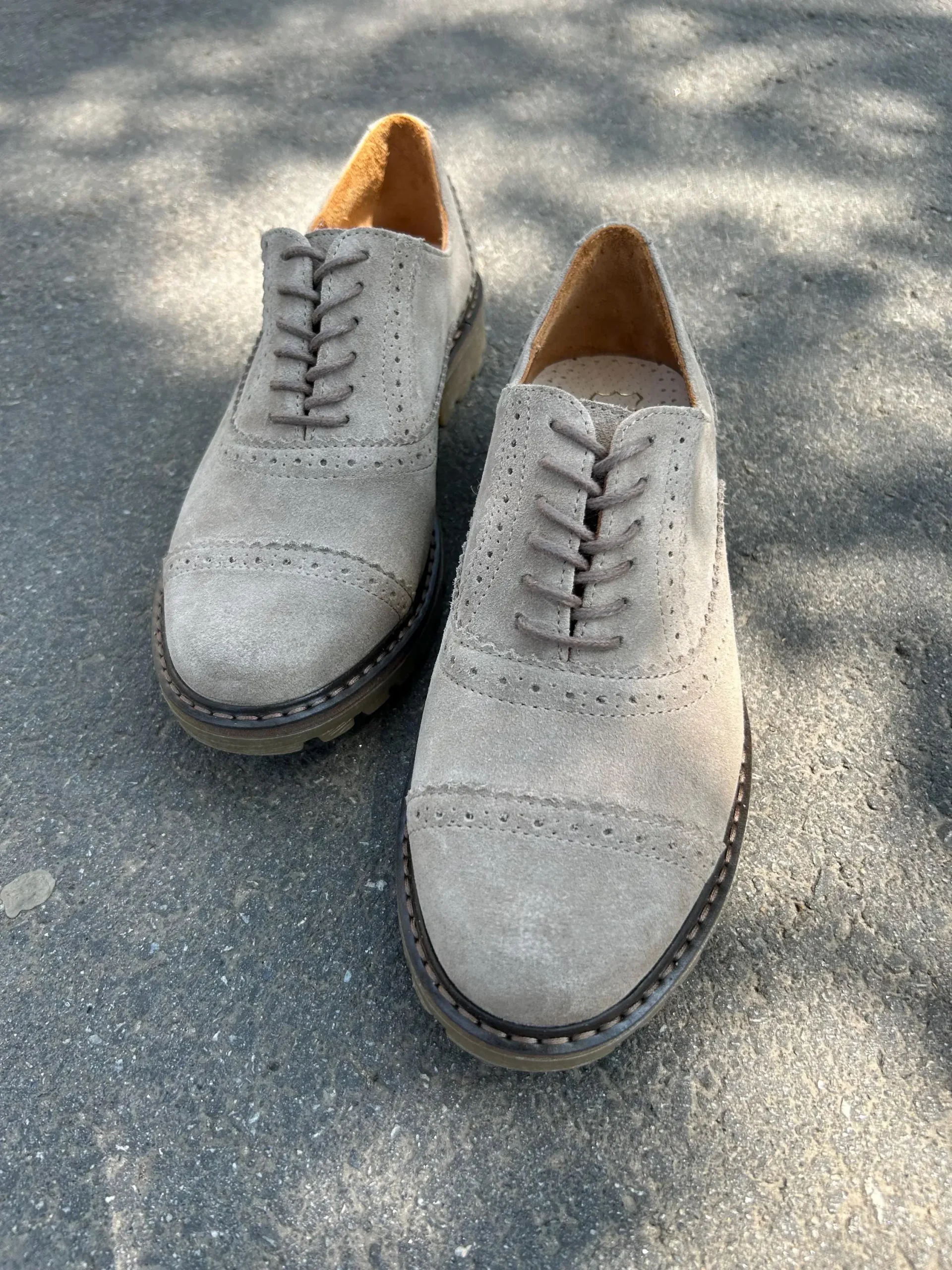Handmade Beige Suede Brogues: Women’s Oxford Shoes