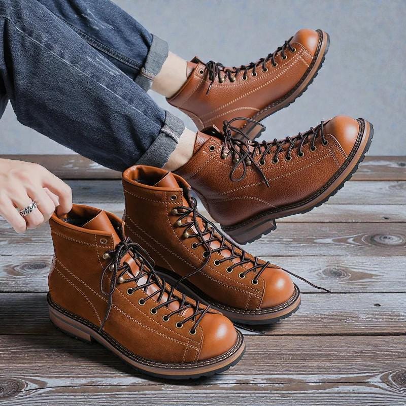 Men S Vintage Leather Boots High Top Work