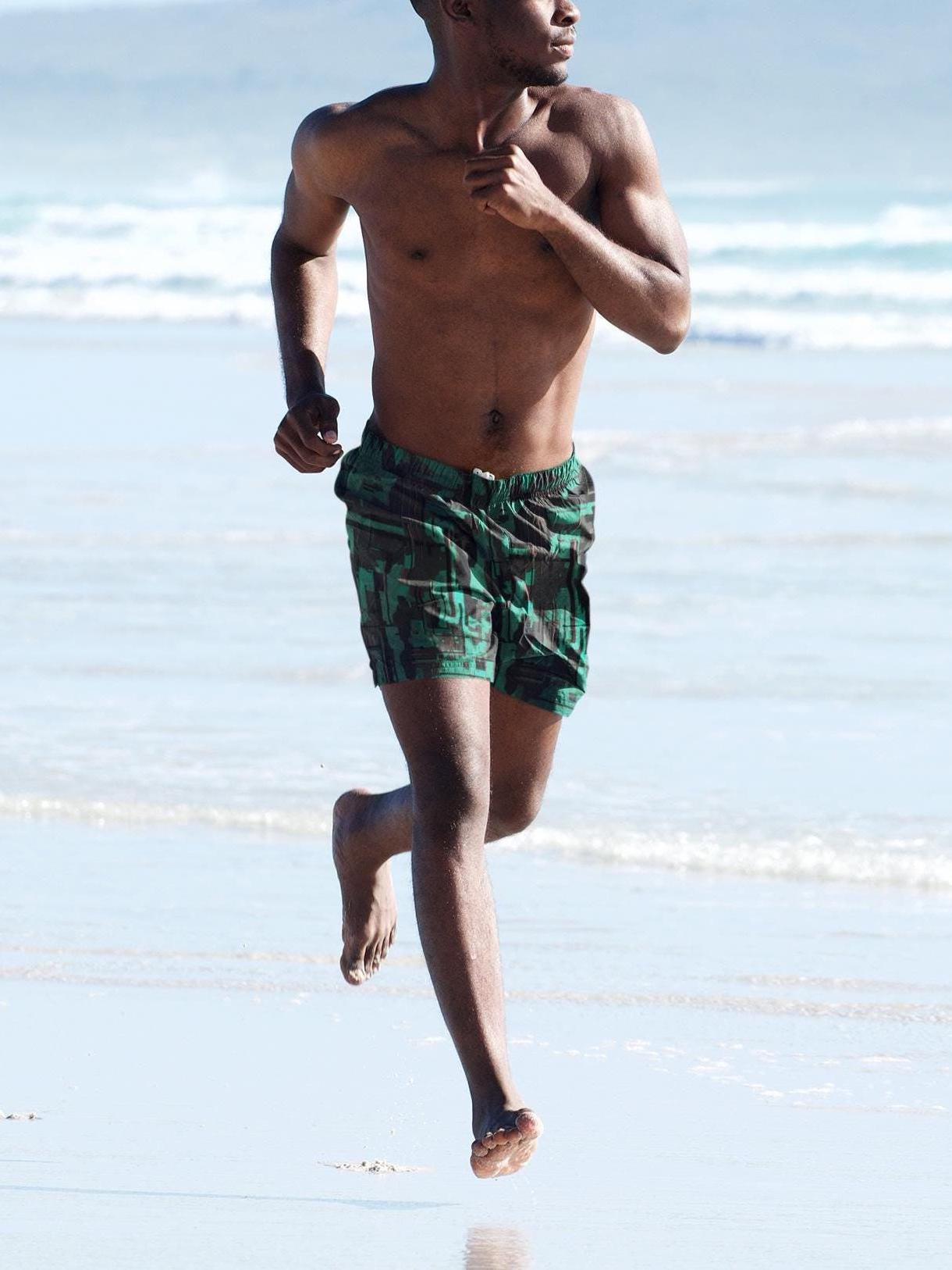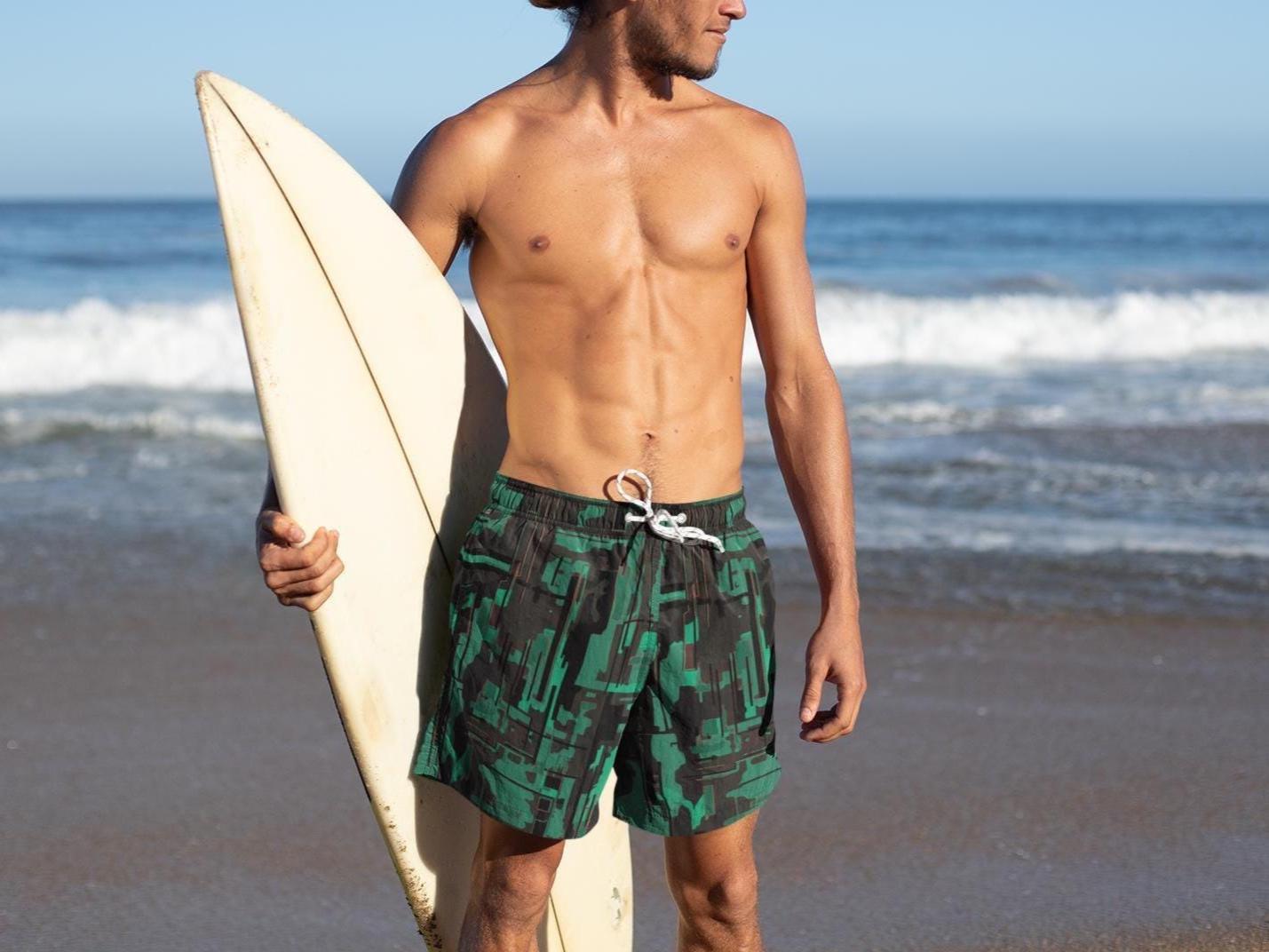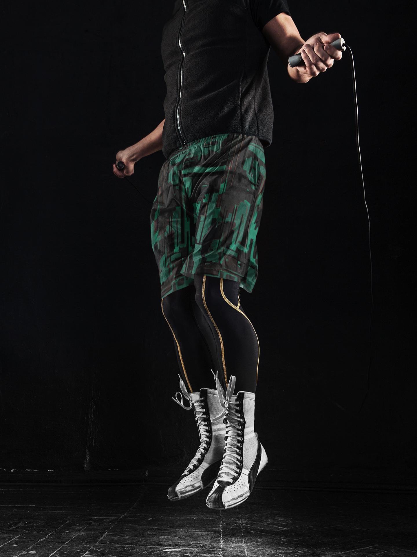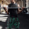 Men’s Long Athletic Workout Shorts Green Black Digital