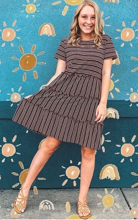 Be the first to review “Stretchy Stripe Mini Dress: Ribbed Knit Round Neck”